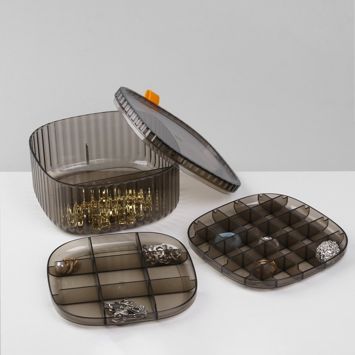 Если вы занимаетесь реализацией разнообразных украшений и аксессуаров, то вам нужно наглядно продемонстрировать свой товар, представив его в лучшем виде. Органайзер для хранения украшений «Лео» 3 уровня, 32 ячейки, 15×15×7,5 см, цвет коричневый как нельзя лучше справится с этой задачей! У каждого украшения появится своё место, откуда его можно будет хорошо рассмотреть.