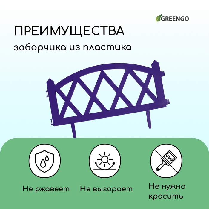 Ограждение декоративное, 35 × 220 см, 4 секций, пластик, сиреневое, MODERN, Greengo