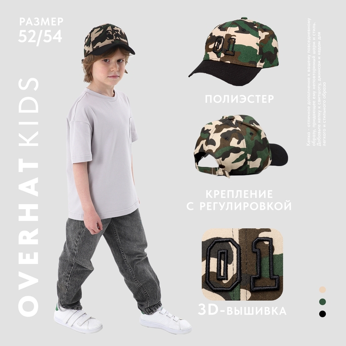Кепка детская для мальчика «01», цвет хакки, р-р 52-54, 5-7 лет