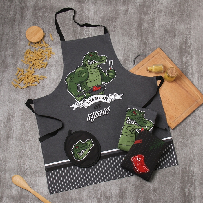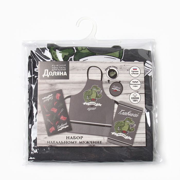 Кух. Набор Доляна"Главный на кухне" 3 пр.: фартук 70х60 см,прих. 20х20 см,полот.35х60см-2шт