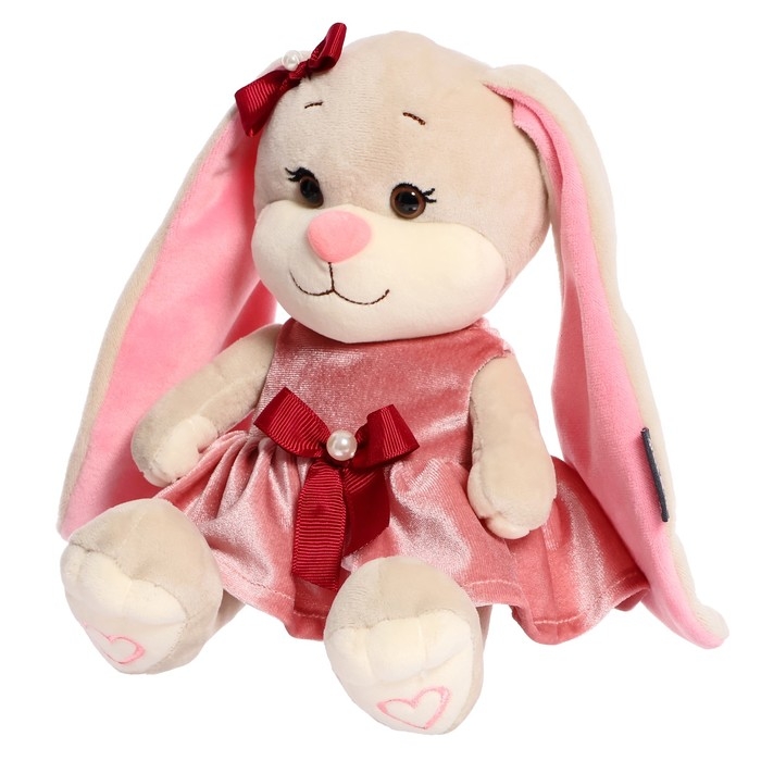 Мягкая игрушка «Зайка Лин», в розовом бархатном платьице с бантиком, 20 см