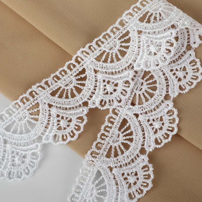 Кружево гипюровое, 45 мм × 9 ± 0,5 м, цвет белый