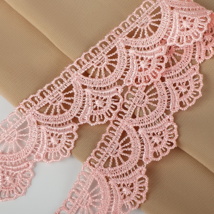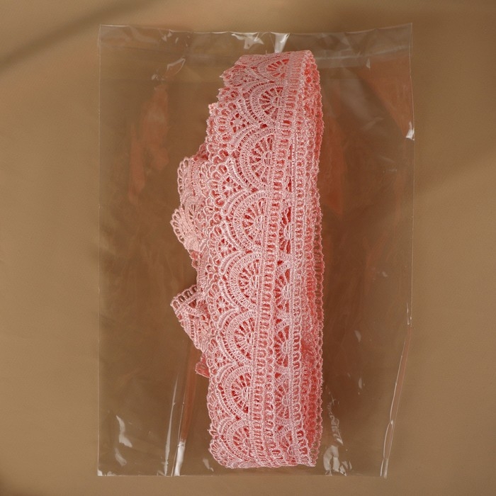 Кружево гипюровое, 35 мм × 11 ± 1 м, цвет нежно-розовый