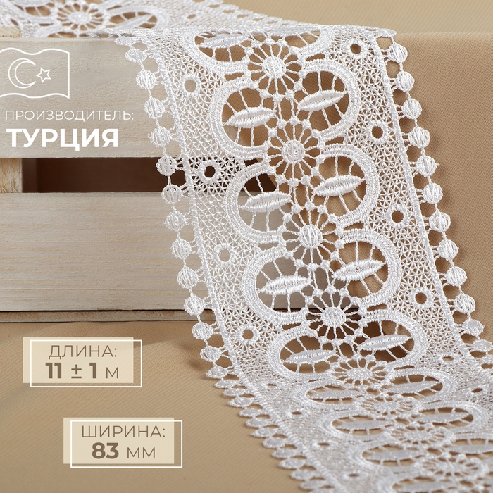 Кружево гипюровое, 83 мм × 11 ± 1 м, цвет белый