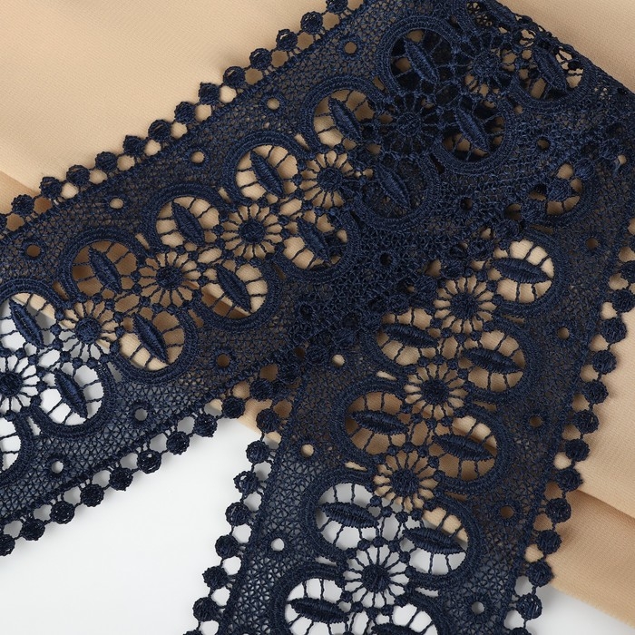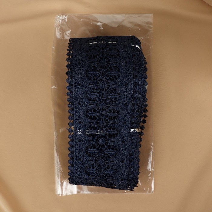 Кружево гипюровое, 83 мм × 11 ± 1 м, цвет тёмно-синий