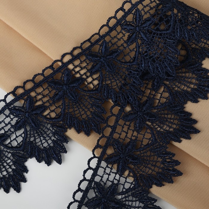 Кружево гипюровое, 49 мм × 11 ± 1 м, цвет тёмно-синий