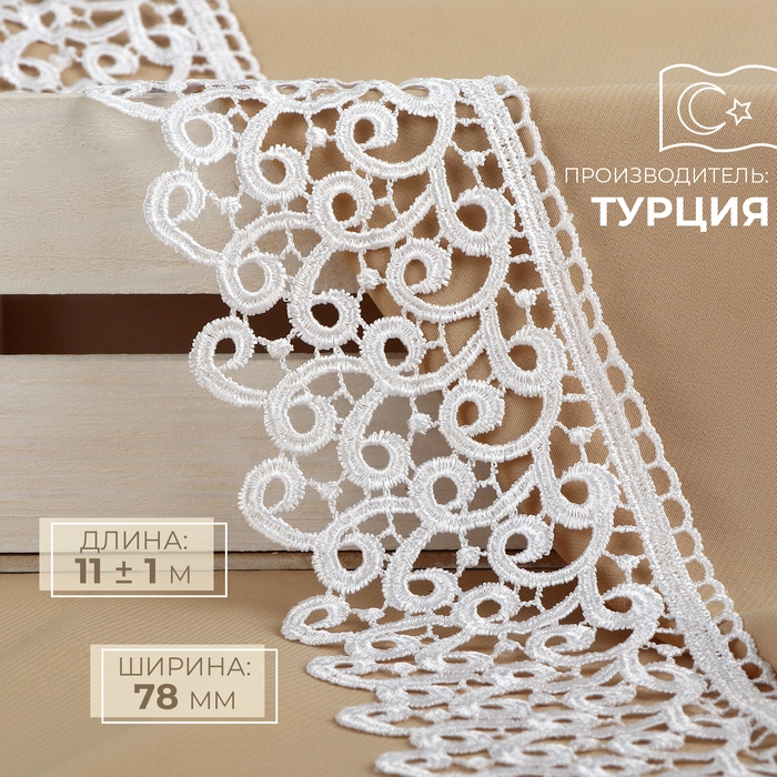 Кружево гипюровое, 78 мм × 11 ± 1 м, цвет белый