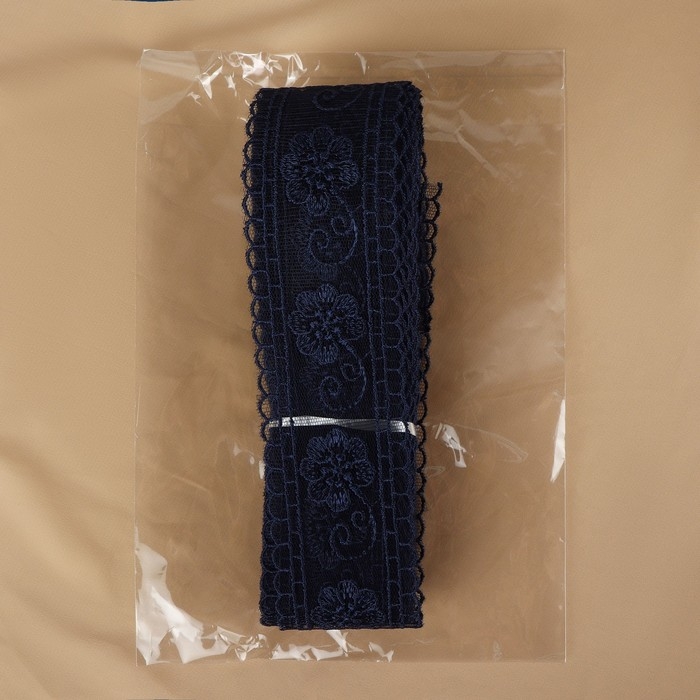 Кружево на сетке, 50 мм × 11 ± 1 м, цвет тёмно-синий