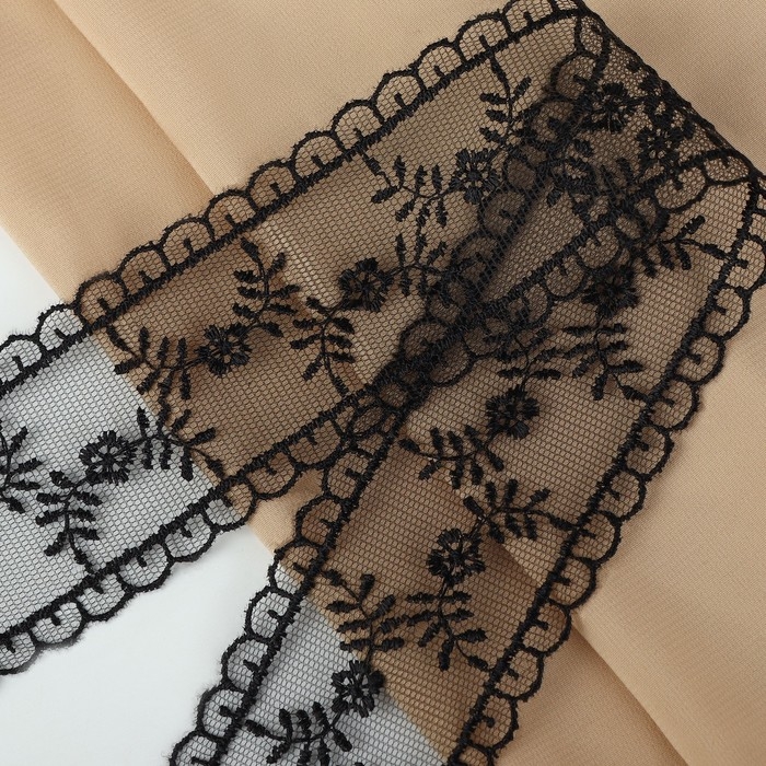 Кружево на сетке, 50 мм × 11 ± 1 м, цвет чёрный