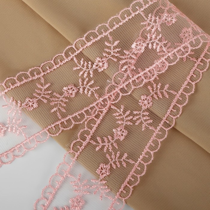 Кружево на сетке, 50 мм × 11 ± 1 м, цвет нежно-розовый