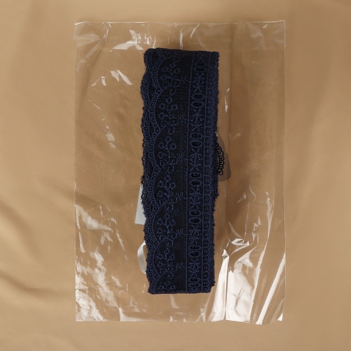 Кружево на сетке, 45 мм × 11 ± 1 м, цвет тёмно-синий