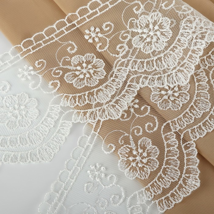 Кружево на сетке, 90 мм × 11 ± 1 м, цвет белый