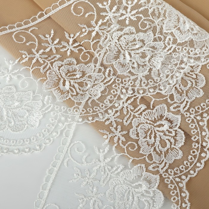 Кружево на сетке, 105 мм × 11 ± 1 м, цвет айвори