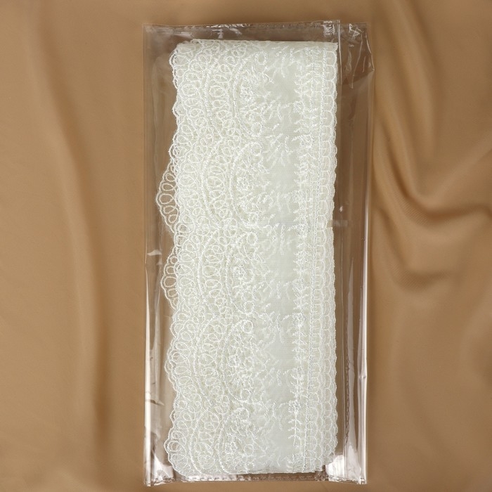 Кружево на сетке, 95 мм × 11 ± 1 м, цвет айвори