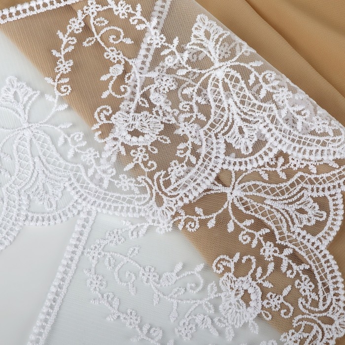 Кружево на сетке, 145 мм × 11 ± 1 м, цвет белый