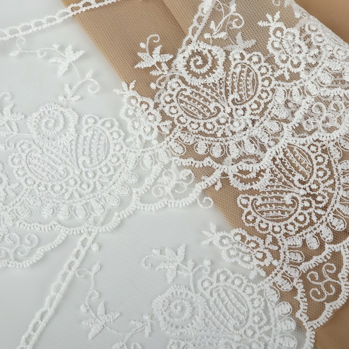 Кружево на сетке, 125 мм × 11 ± 1 м, цвет айвори
