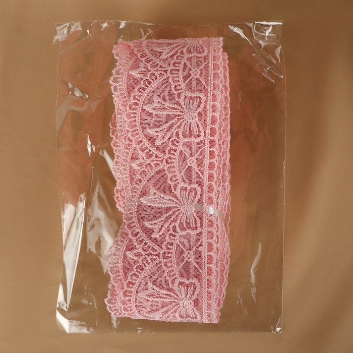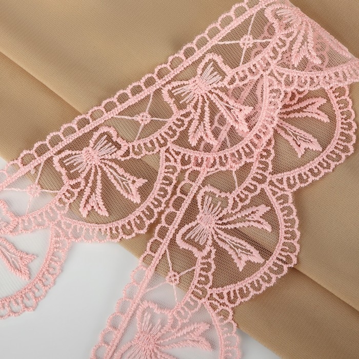 Кружево на сетке, 55 мм × 11 ± 1 м, цвет нежно-розовый