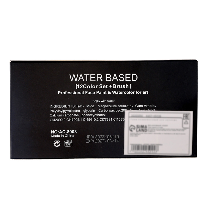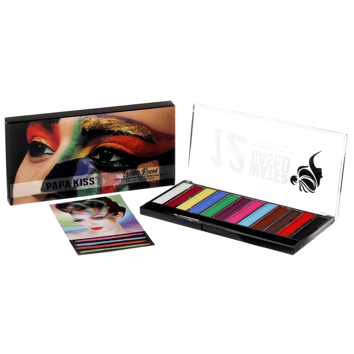 Аквагрим профессиональный для лица и тела, 12 цветов, кисточка