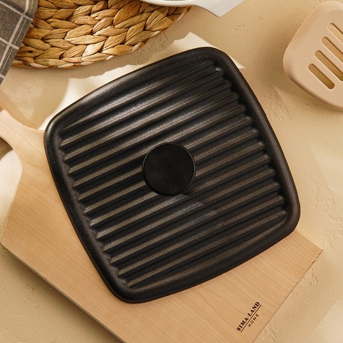 Эта крышка-пресс не только функциональна, но и долговечна. Чугунная конструкция обеспечивает длительный срок службы, а ручка, также выполненная из чугуна, удобна и надёжна в использовании. Благодаря квадратной форме и стильному чёрному цвету, она прекрасно впишется в любой кухонный интерьер.