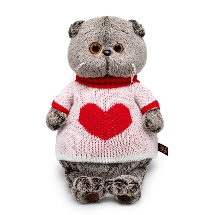Мягкая игрушка «Басик», в свитере с сердцем, 19 см