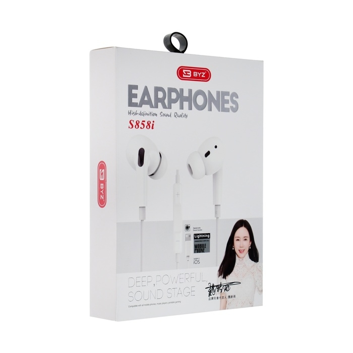 Наушники BYZ S858, проводные, вакуумные, Lightning, 1.2 м, белые