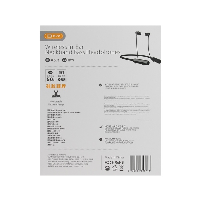 Наушники BYZ B51, беспроводные, вакуумные, ВТ 5.3, 400 мАч, чёрные