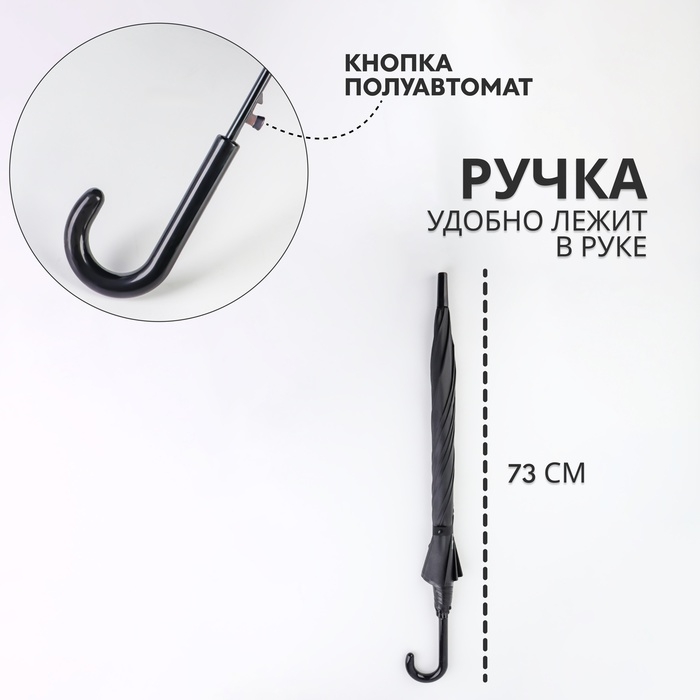 Элегантный зонт - трость сохранит вашу причёску и макияж. Благодаря широкому и прочному куполу он обеспечит наилучшую защиту от непогоды.