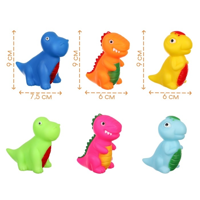 Набор резиновых игрушек для ванны «Динопарк», с пищалкой, 6 шт, виды МИКС, Крошка Я