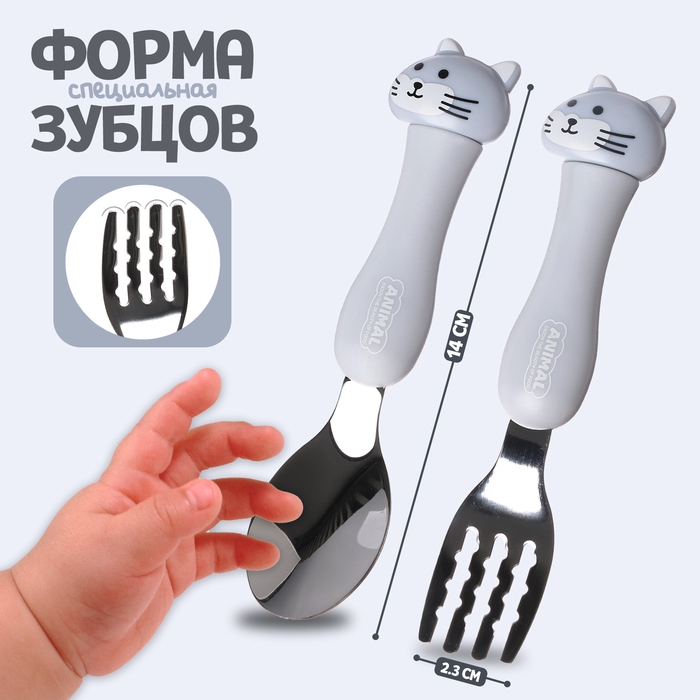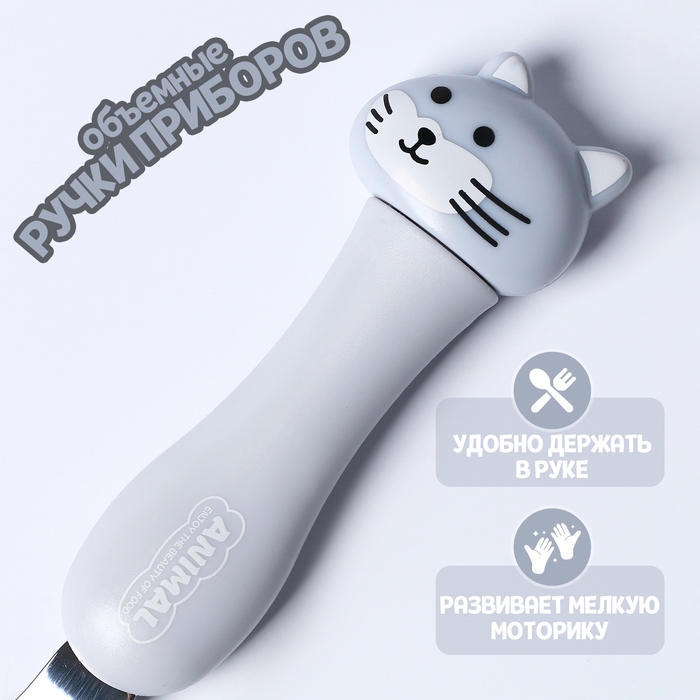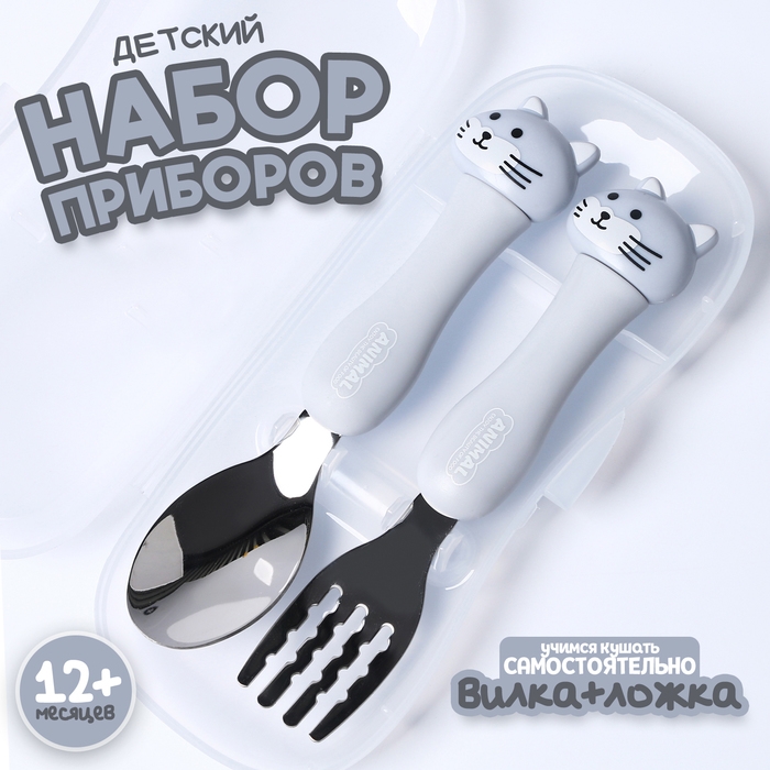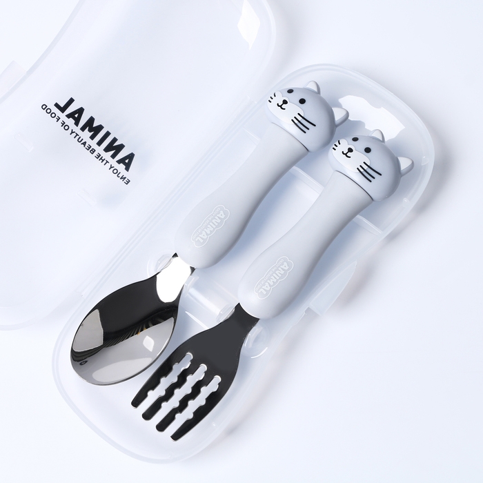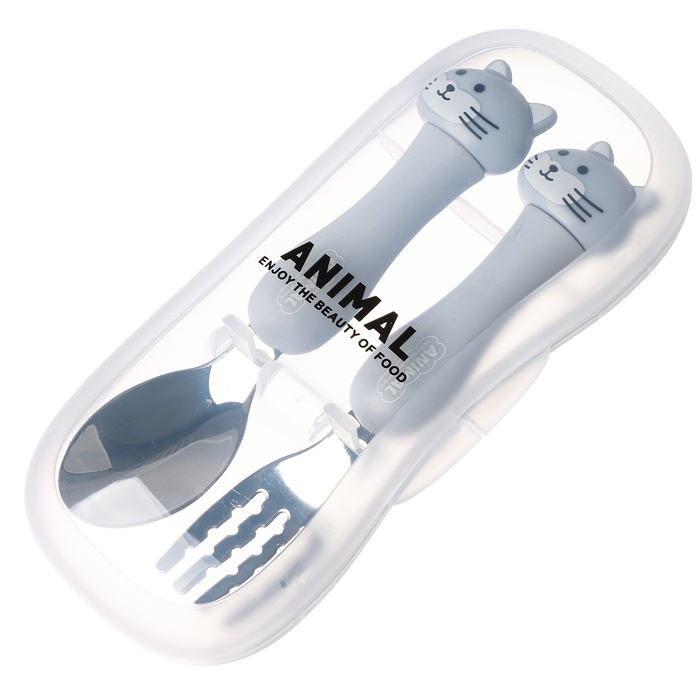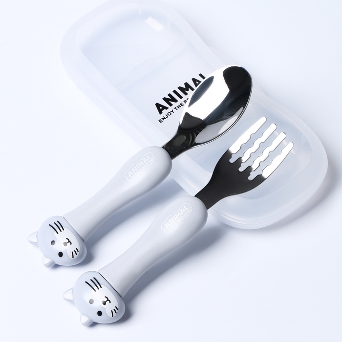 Набор детских столовых приборов в футляре «Котята», вилка, ложка