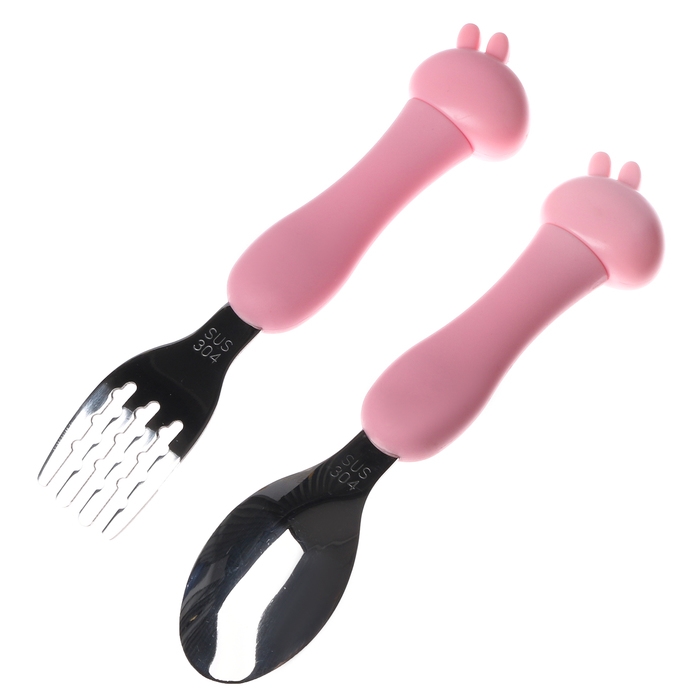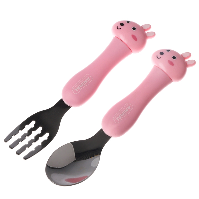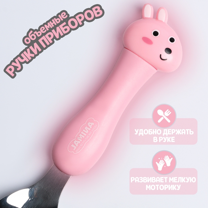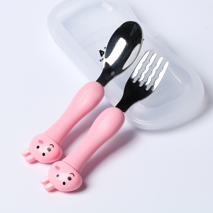 Набор детских столовых приборов в футляре «Зайчата», вилка, ложка