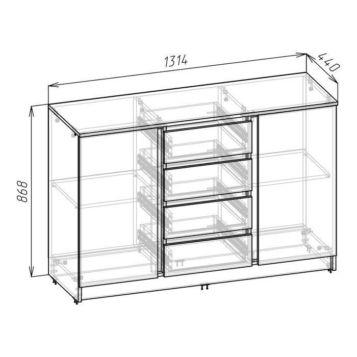 Комод Ланс, 1314х430х647, Графит/Дуб бунратти