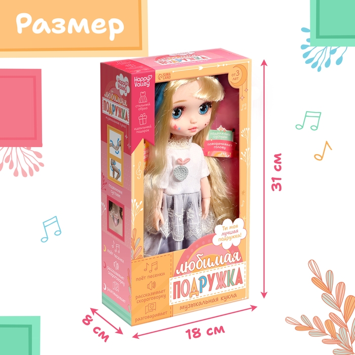 - Кукла изготовлена из долговечного и безопасного пластика и текстиля.