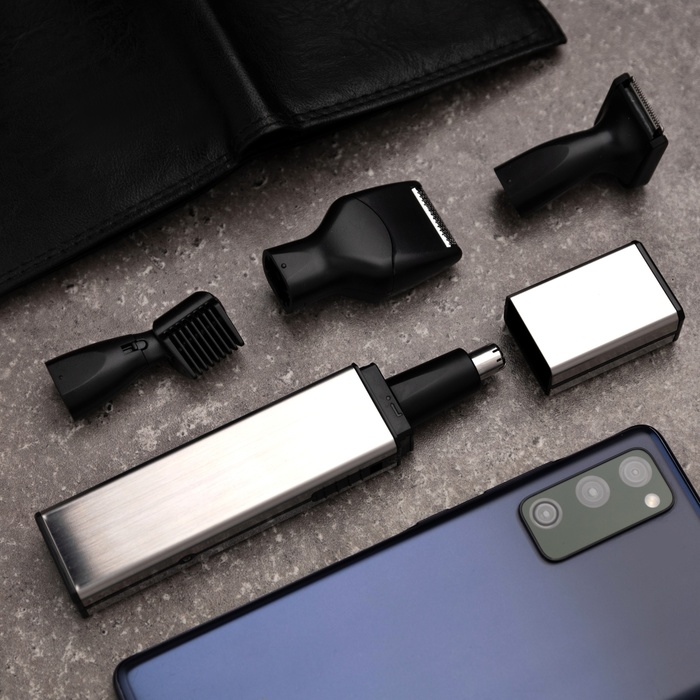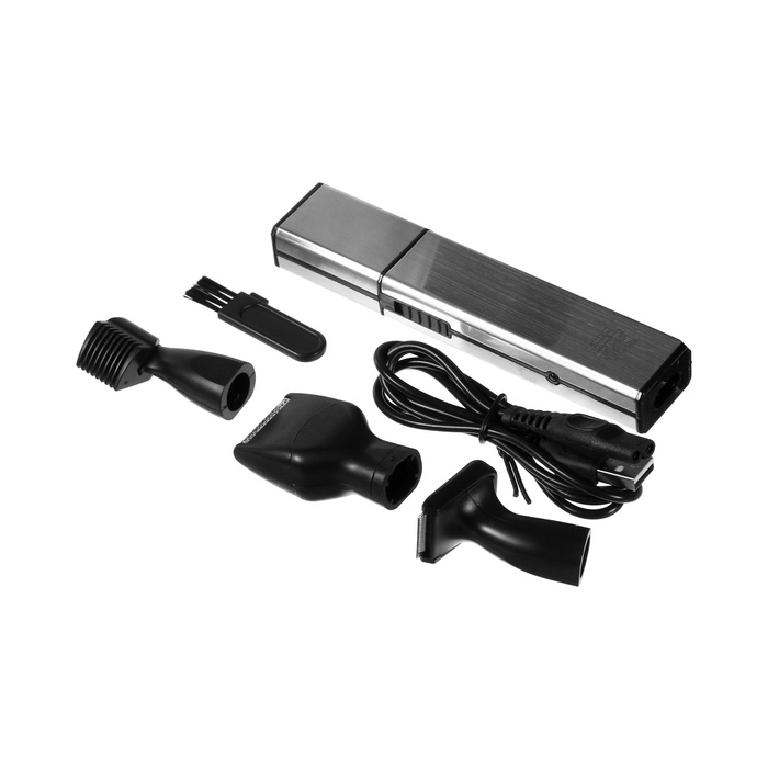 Триммер для волос Luazon LTRI-17, для усов/носа/бороды, 4 насадки, АКБ, серебристый