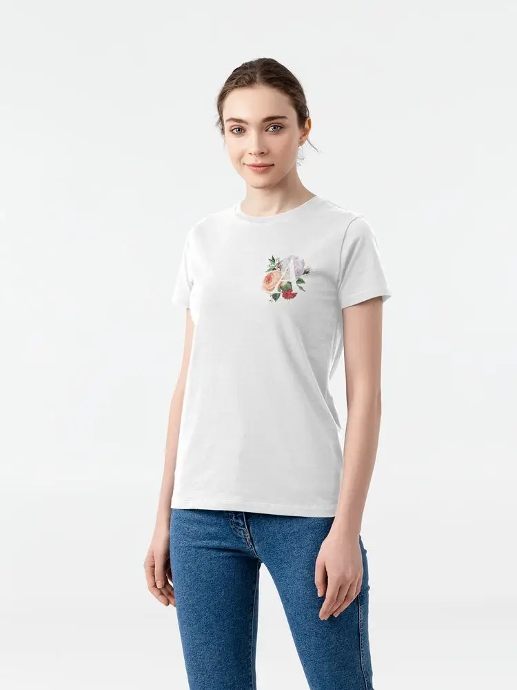 Футболка женская «Цветочная азбука: А», белая, размер L