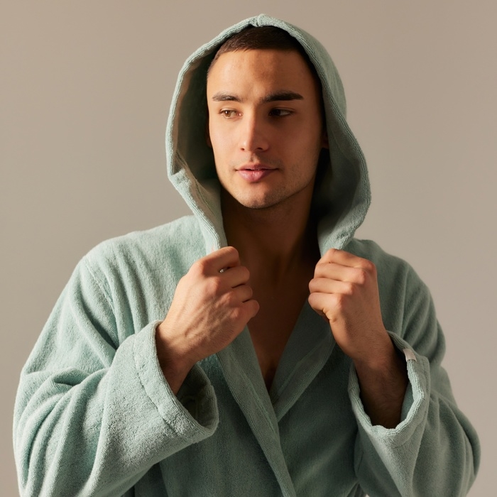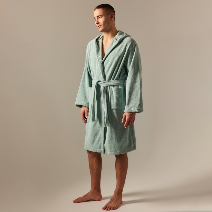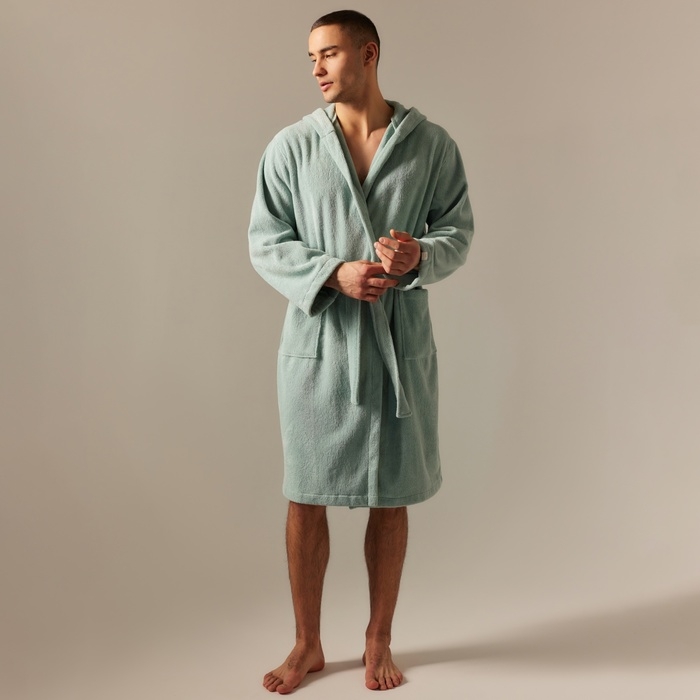 Халат махровый с капюшоном мужской SL HOME: Basic "Аззура", размер XL, 100% хлопок, 420 г/м2