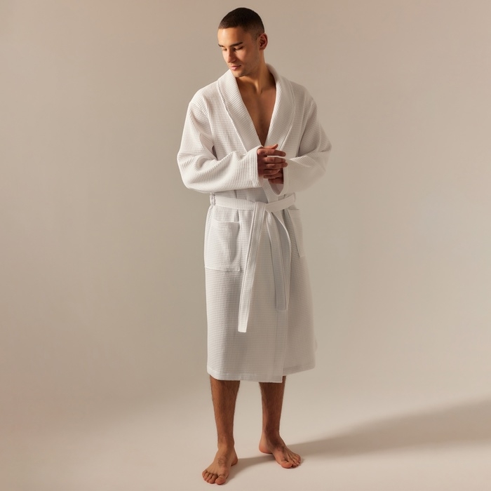 Халат вафельный мужской SL HOME: Basic "Блан де Блан", размер S, 100% хлопок, 300 г/м2