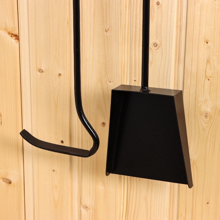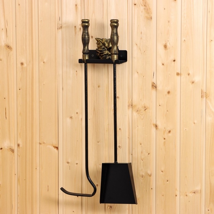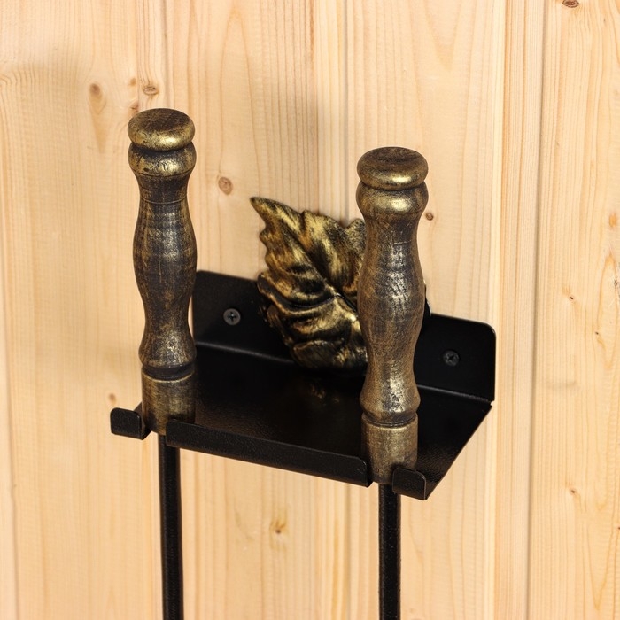 Каминный набор, настенный "Лист", черный с золотой патиной (деревянные ручки) 640*150