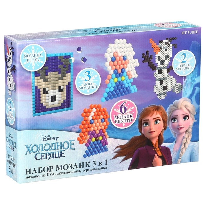 Набор мозаек 3 в 1 «Холодное сердце», Авквамозайка, Термомозайка и мозаика из EVA, 4+