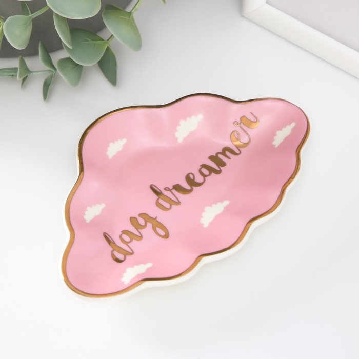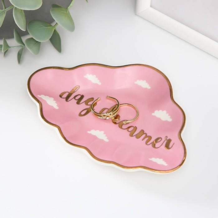 Сувенир керамика подставка под кольца "Розовое облачко" 1,6х8х12 см