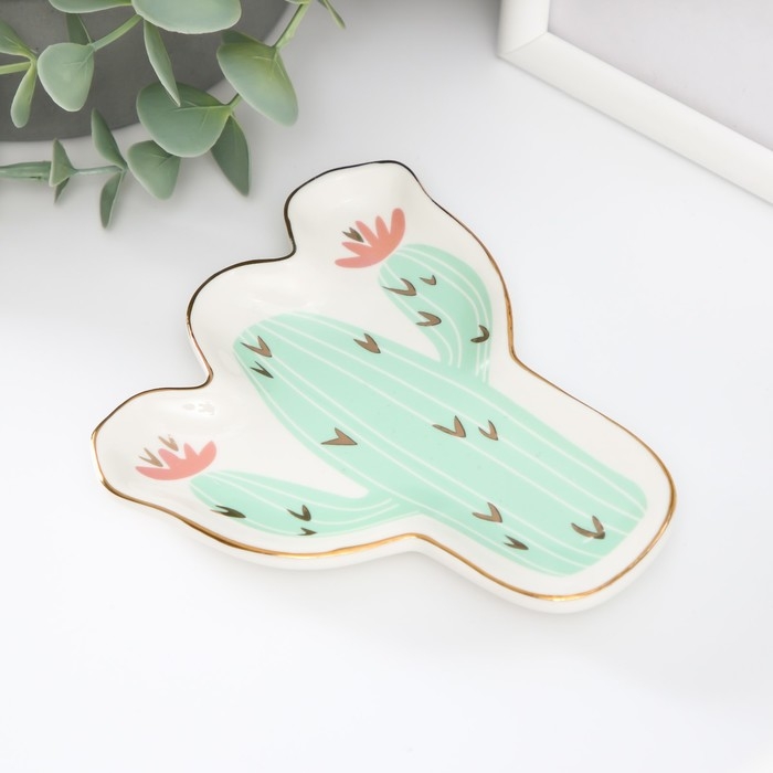 Сувенир керамика подставка под кольца "Кактус с цветами" 1,6х11х12 см