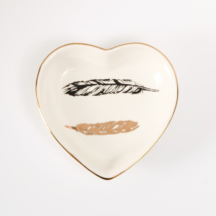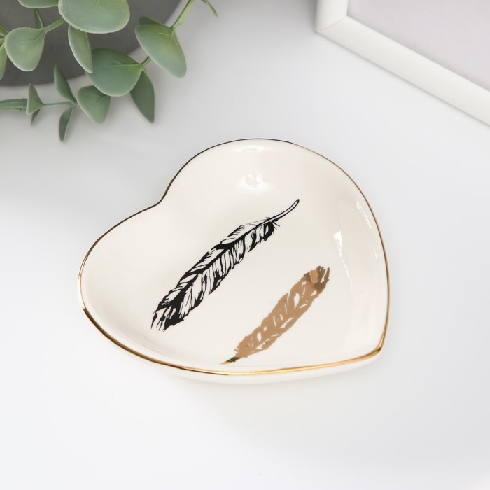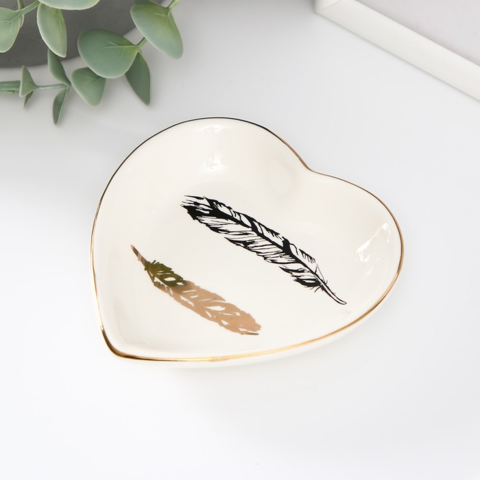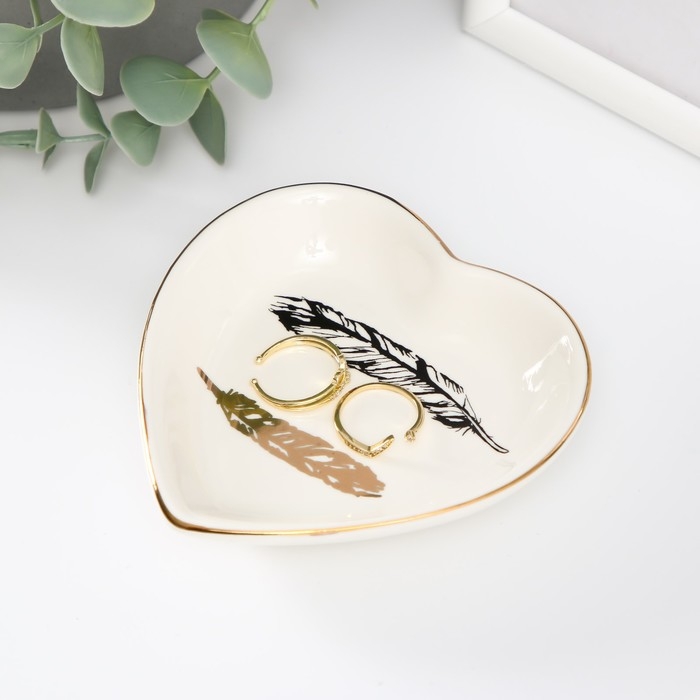 Сувенир керамика подставка под кольца "Сердце. Пёрышки" 10,5х10х2 см
