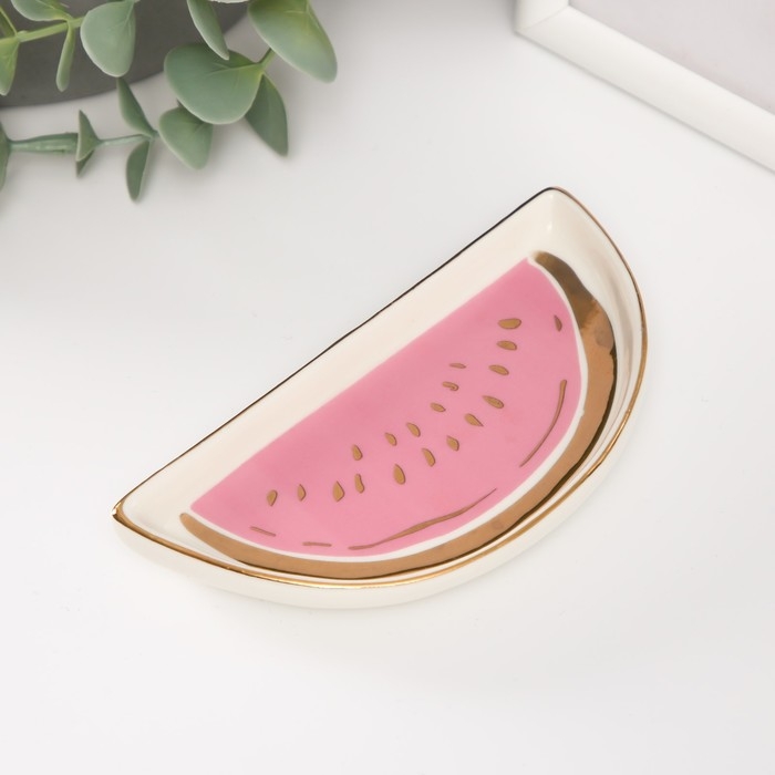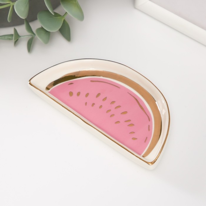Сувенир керамика подставка под кольца "Кусочек арбуза" 12х6х1,6 см