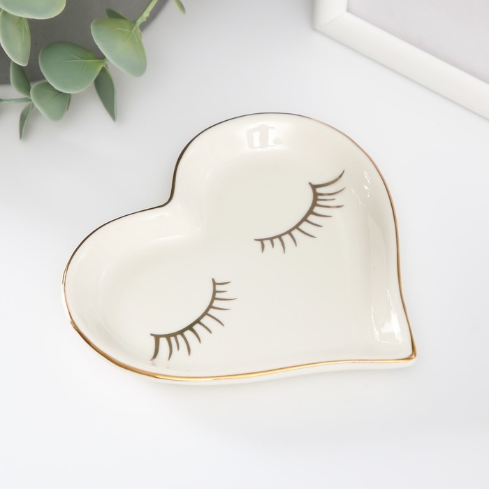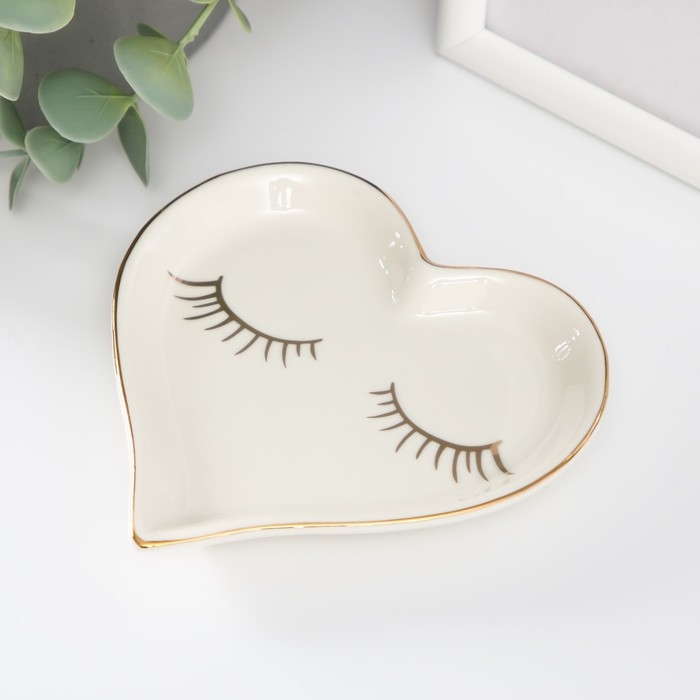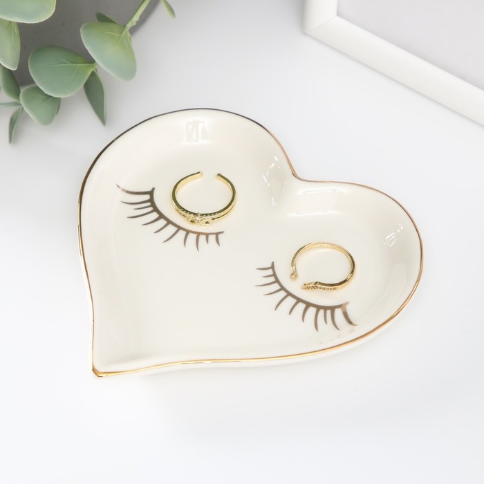 Сувенир керамика подставка под кольца "Сердце с ресничками" 11х11,5х1,4 см