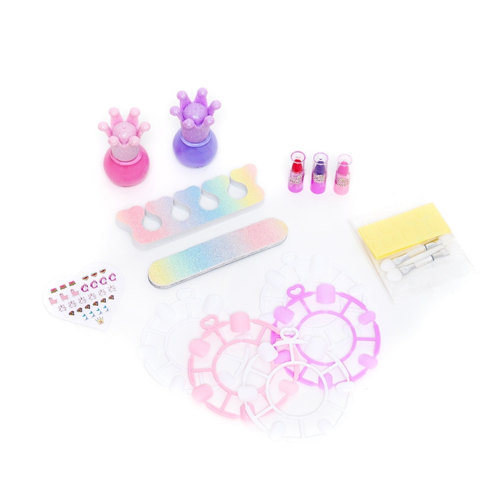 - Лак для ногтей (2 шт): Различные оттенки лака, предоставляющие возможность для экспериментов с маникюром.