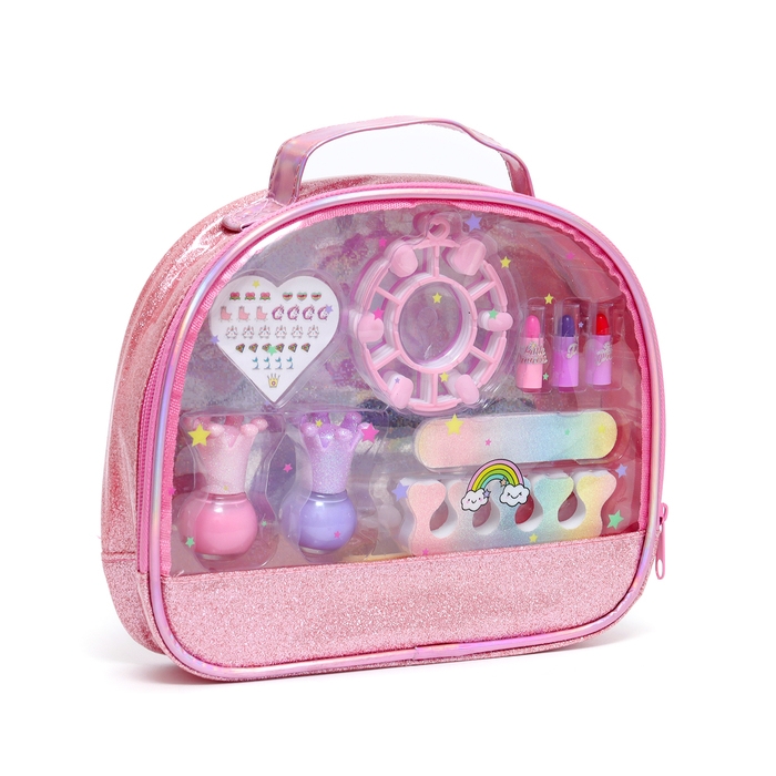 - Сумочка: Стильная и удобная сумочка для хранения всей косметики, которая легко помещается в руках маленькой модницы.