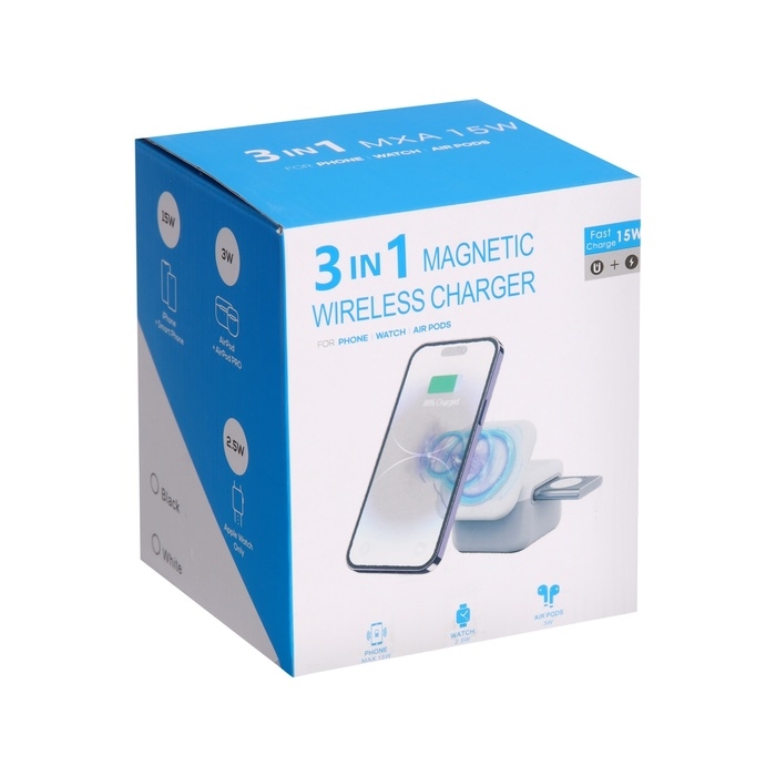 Беспроводное зарядное устройство 3 в 1 H31, 15 W, подсветка, Type-C, белая