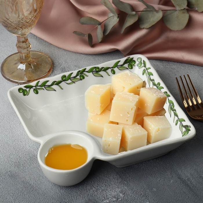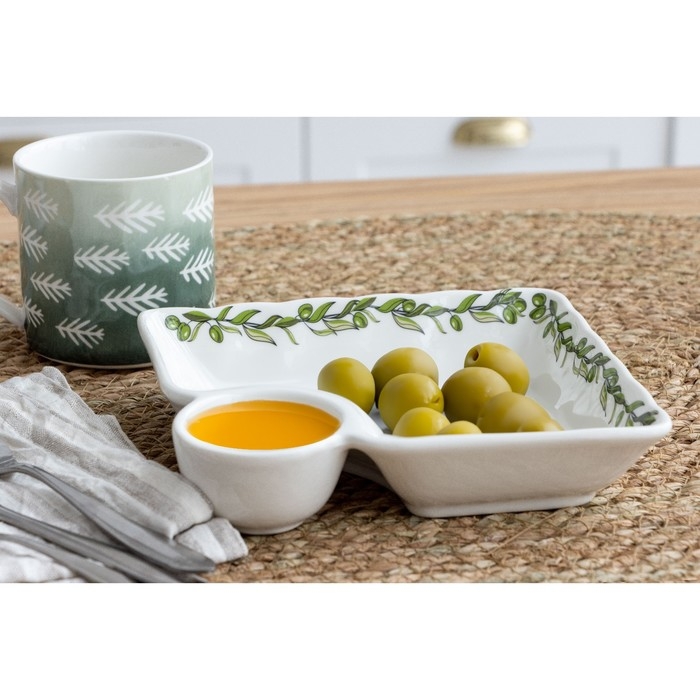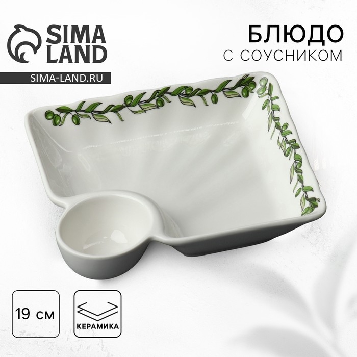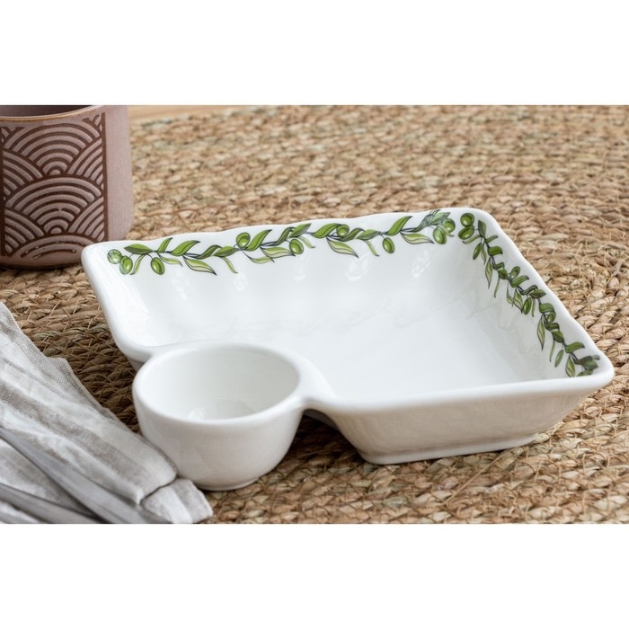 Блюдо керамическое с соусником «Оливки», 18.6 х 17.5 х 4 см, цвет белый