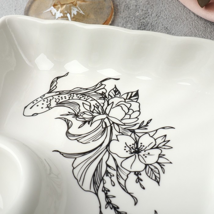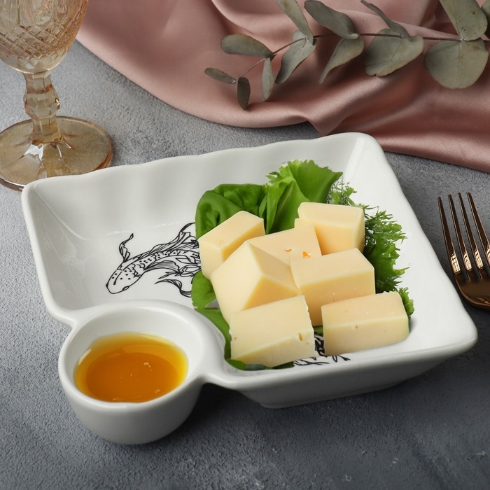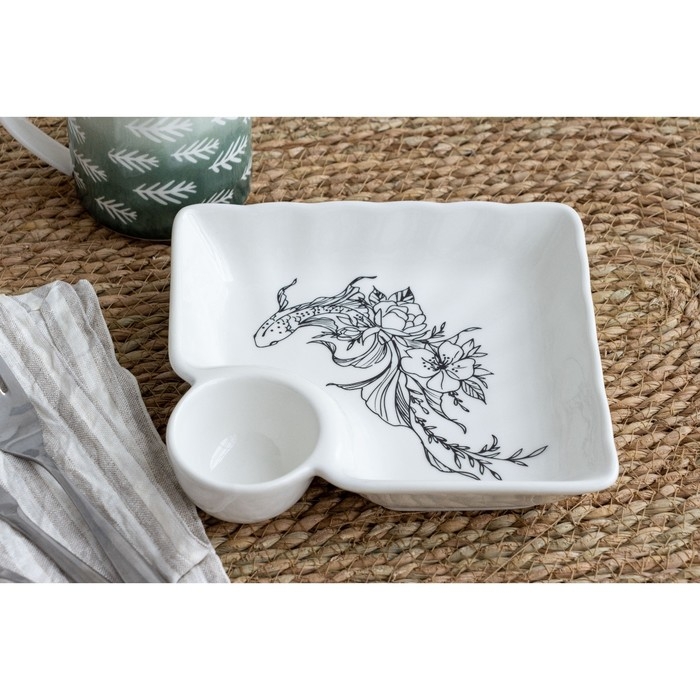 Блюдо керамическое с соусником «Азия», 18.6 х 17.5 х 4 см, цвет белый