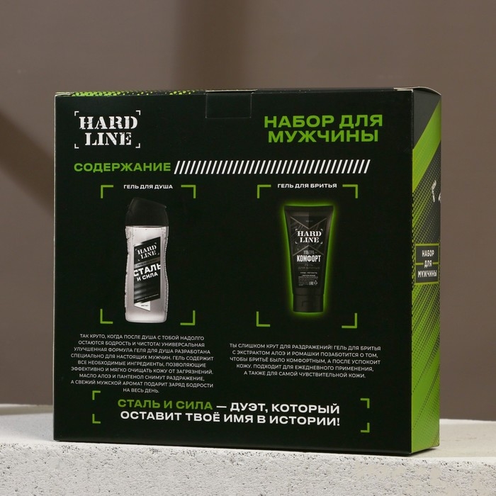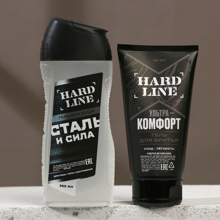 Подарочный набор косметики «Сталь и сила», гель для душа 250 мл и гель для бритья 110 мл, HARD LINE