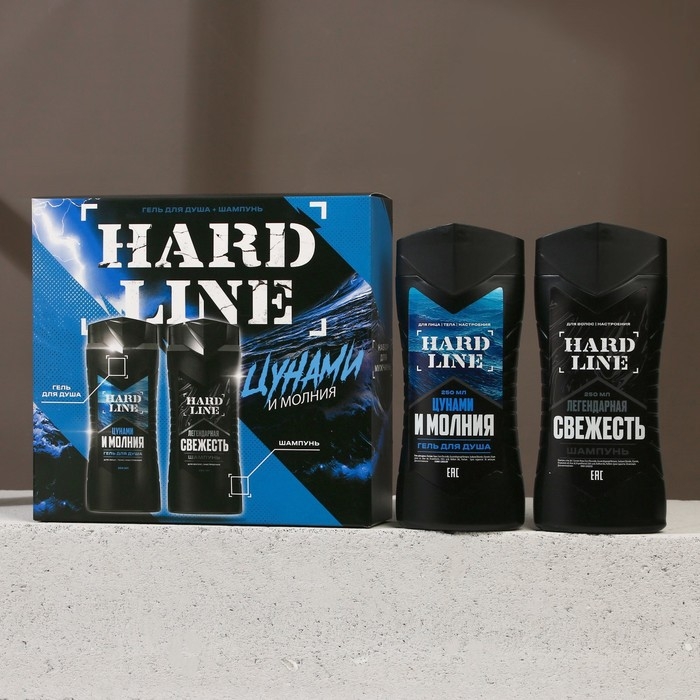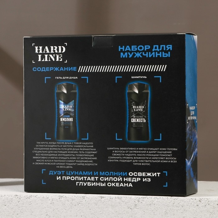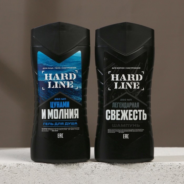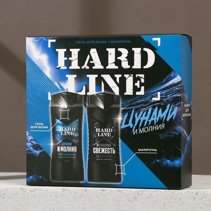 Подарочный набор косметики «Цунами и молния», гель для душа 250 мл и шампунь для волос 250 мл, HARD LINE